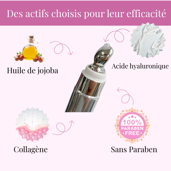 Collagène & Acide Hyaluronique pour lisser et repulper immédiatement.